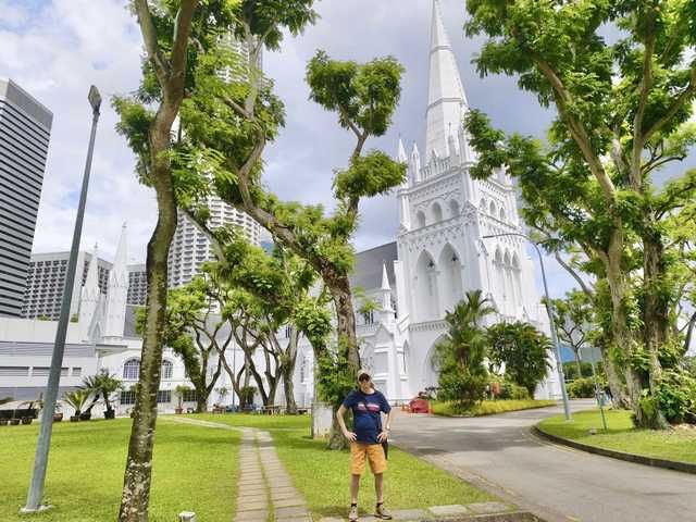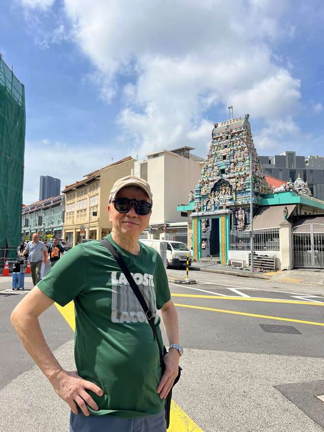 新加坡位於赤道附近。赤道給人一個熱的印象,新加坡並不是想像的那樣火焰,這裡海風習習,街上樹影婆娑,但我還是覺得悶熱。